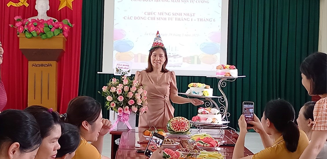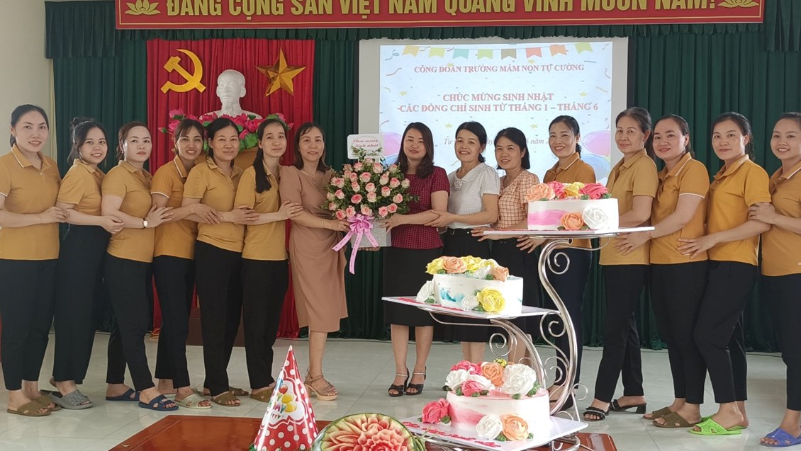 Thực hiện Kế hoạch của Ban chấp hành Công đoàn nhiệm kỳ 2023 - 2028 và phương hướng nhiệm vụ công tác Công đoàn năm 2023. Công đoàn Trường mầm non Tự Cường tổ chức sinh nhật đoàn viên công đoàn tháng 1,2,3,4,5,6. Đây là một việc làm nhằm thiết thực quan tâm, chăm lo đời sống vật chất và tinh thần cho Đoàn viên công đoàn góp phần thực hiện nếp sống văn minh và xây dựng đời sống văn hóa trong nhà trường.