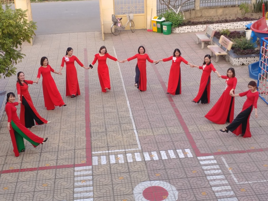 Hình ảnh tập thể nhà trường hưởng ứng tuần lễ áo dài